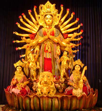markondeo পুরাণ মতে মহিষাসুর মর্দিনী দ্বিভূজা,চতুর্ভূজা, অষ্টভূজা, দশভূজা,অষ্টাদশভূজা বা সহস্রভূজা হতে পারে |সহস্রভূজা ছাড়া আর প্রায় সব মূর্তি পূজা করা হয় বিভিন্ন জায়গায় | এই পূজার বিশেষত্ব এই যে সিংহবাহিনী, মহিষাসুর মর্দিনী দূর্গা পূজিত হন লক্ষ্মী, সরস্বতী, কার্তিক,গনেশ এর সাথে..![]() |